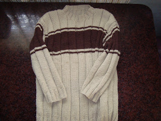 Pullover beige con raya chocolate.